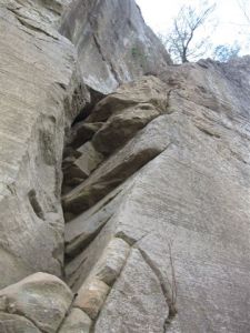 BONUS : Did you know you can climb up courthouse rock? Notice: this activity can be extremely dangerous and potentially deadly. Do not attempt without proper training and definitely bringing ropes and safety equipment. The first part begins on the left side and you scramble up the bottom part at which point the path crosses to the other side where you scramble up below the gully pictured below. When you get to this gully it gets dangerous and you need training, equipment and or a guide. To climb the gully you put your back against the right wall and your feet on the other wall and ascend. While it does not look bad in the picture, when you arrive you will realize the gully is over a major cliff and there is no room for error.