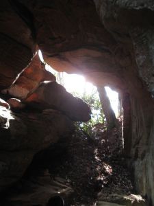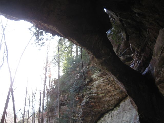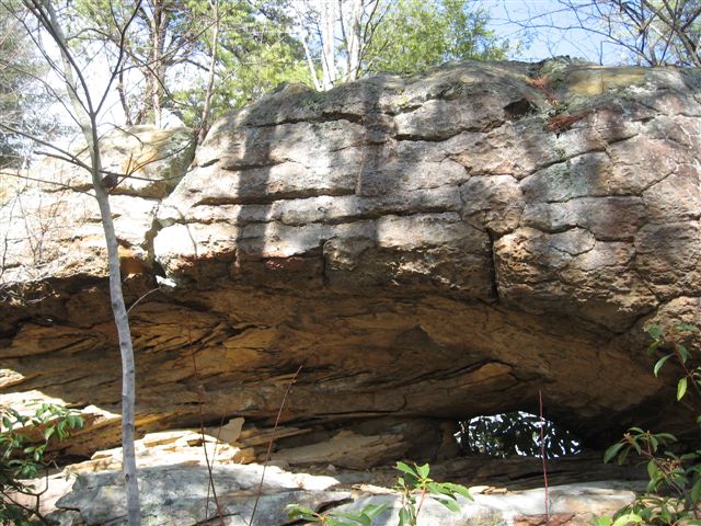SUMMARY: A difficult short hike via land to Cherokee Arch. You will pass by Rat Windows #1 and #2 on the way to Cherokee Arch. On the return hike you may choose to visit Mushroom Arch and Rat Windows #3 and #4. Cherokee Arch is a beautiful Arch with a waterfall flowing over it. While it is very close to popular sites such as Princess Arch and Chimney Top Rock the lack of a trail make it a very secluded site. You will absolutely need a topographical map, a GPS and a compass and you will know how to use them.